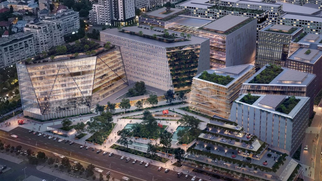 Review of the Gensler authored concept design proposal for the Justice Quarter administrative complex in downtown Bucharest.